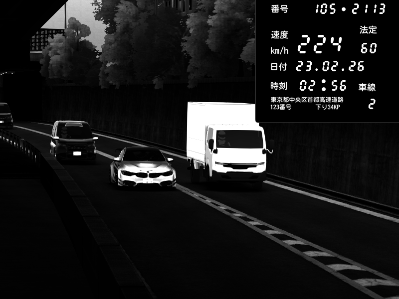 | 2026/02/23 02:56 | C1外回り 京橋 | 224 / 60 km/h | BMW M4 crash.Sp Varis Widebody | CAPTURE |
