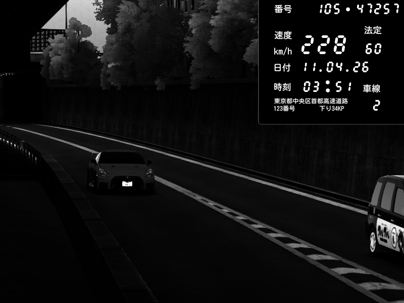 | 2026/04/11 03:51 | C1ε€εγ δΊ¬ζ© | 228 / 60 km/h | Nissan GT-R NISMO 2017 | CAPTURE |