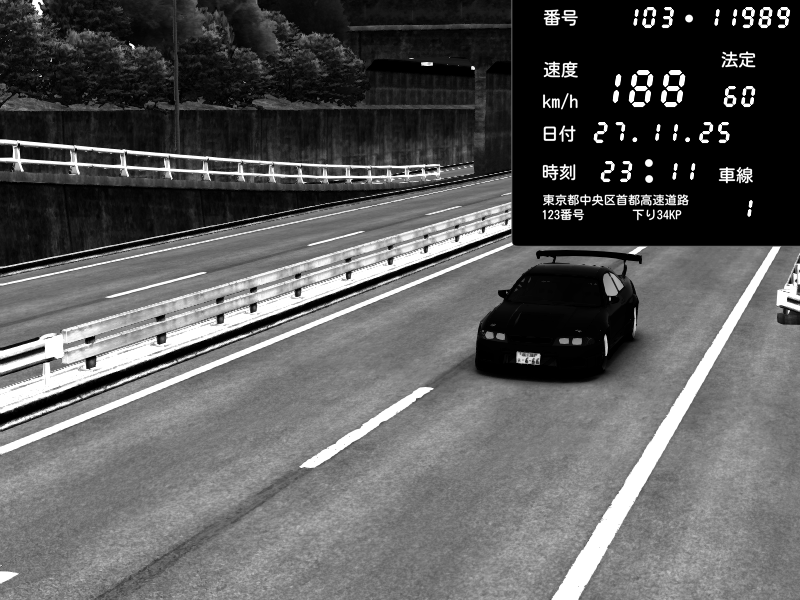 | 2025/11/27 23:11 | C1内回り 銀座 | 188 / 60 km/h | Nissan Skyline GTR R33 (S3 - Wangan) | CAPTURE |