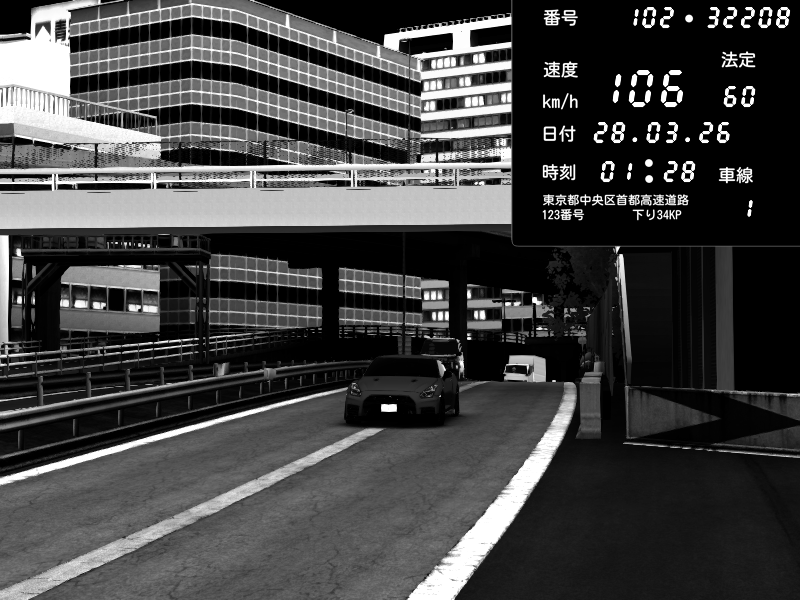 | 2026/03/28 01:28 | C1外回り 新富町 | 106 / 60 km/h | Nissan GT-R NISMO 2017 | CAPTURE |