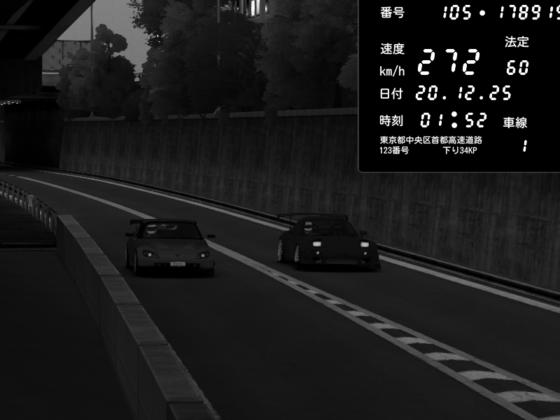 | 2025/12/20 01:52 | C1外回り 京橋 | 272 / 60 km/h | Mazda RX-7 FD3S FEED Afflux GT3 | CAPTURE |