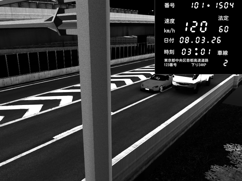 | 2026/03/08 03:01 | C1内回り 竹橋JCT | 120 / 60 km/h | Honda S2000 (AP2 - Legendary) | CAPTURE |