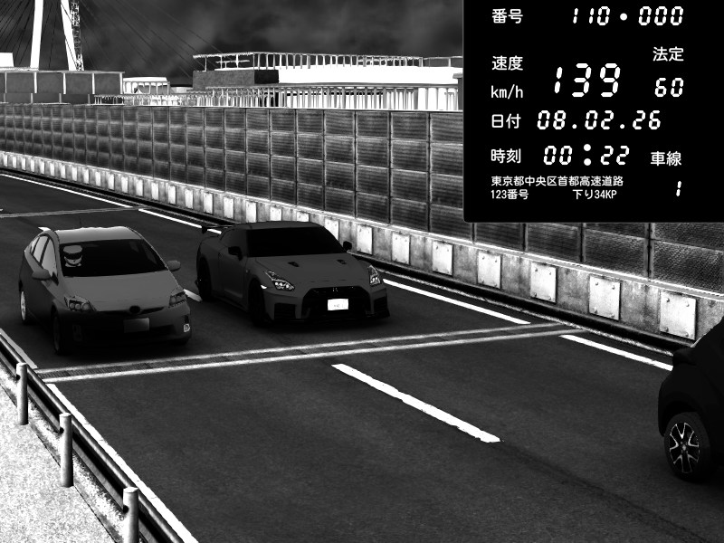 | 2026/02/08 00:22 | K1上り 羽田 | 139 / 60 km/h | Nissan GT-R NISMO 2017 | CAPTURE |