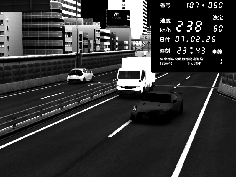 | 2026/02/07 23:43 | C1外回り 芝公園 | 238 / 60 km/h | Nissan GT-R NISMO 2017 | CAPTURE |