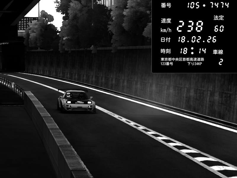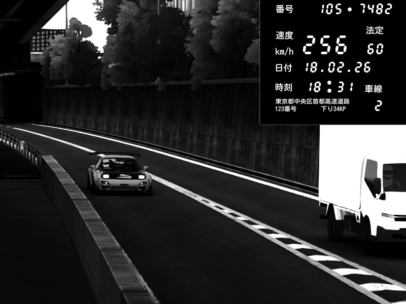 | 2026/02/18 18:31 | C1外回り 京橋 | 256 / 60 km/h | Mazda RX-7 FD3S FEED Afflux GT3 | CAPTURE |