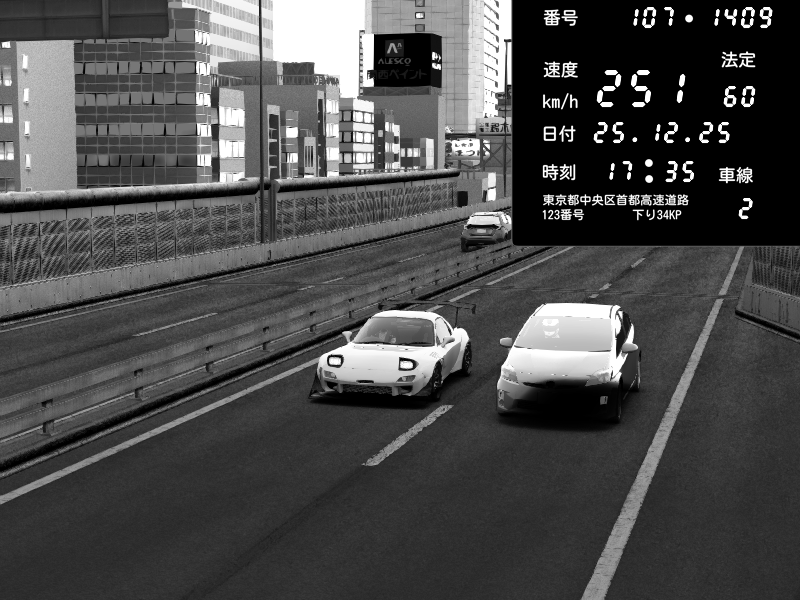 | 2025/12/25 17:35 | C1外回り 芝公園 | 251 / 60 km/h | Mazda RX-7 FD3S FEED Afflux GT3 | CAPTURE |