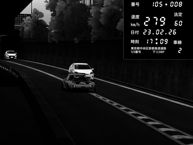 | 2026/02/23 17:00 | C1内回り 竹橋JCT | 190 / 60 km/h | Mazda RX-7 FD3S FEED Afflux GT3 | CAPTURE |