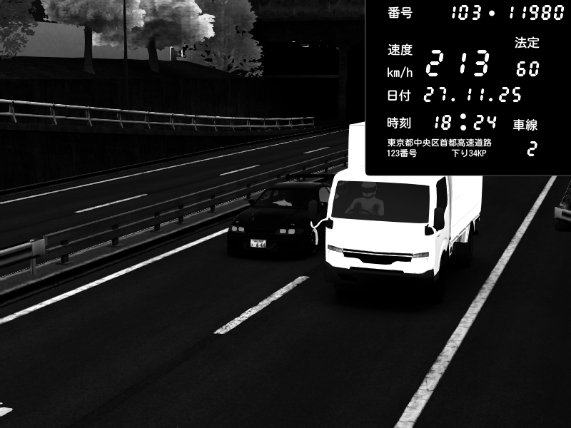 | 2025/11/27 18:24 | C1内回り 銀座 | 213 / 60 km/h | Nissan Skyline GTR R33 (S3 - Wangan) | CAPTURE |