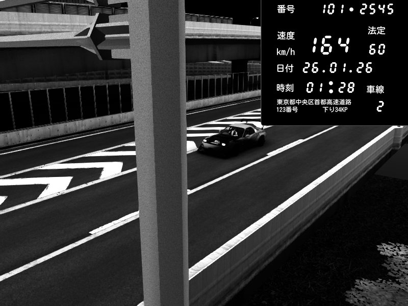 | 2026/01/26 01:28 | C1内回り 竹橋JCT | 164 / 60 km/h | Mazda RX-7 FD3S FEED Afflux GT3 | CAPTURE |
