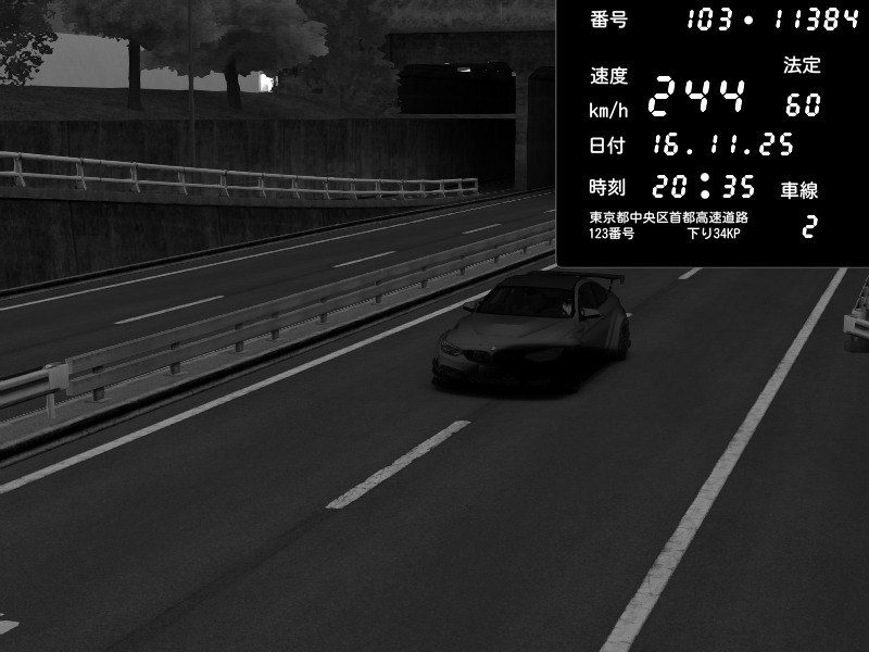 | 2025/11/16 21:38 | C1内回り 銀座 | 207 / 60 km/h | BMW M4 crash.Sp Varis Widebody | CAPTURE |