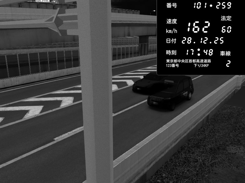 | 2025/12/28 17:48 | C1内回り 竹橋JCT | 162 / 60 km/h | Nissan GT-R NISMO 2017 | CAPTURE |