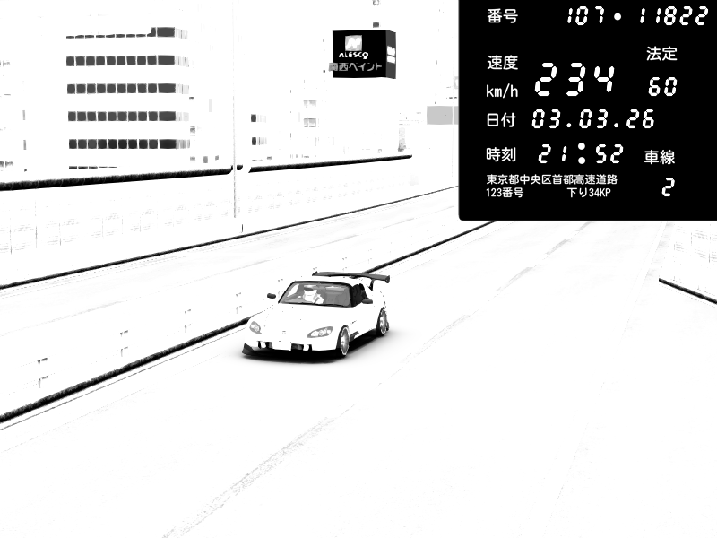 | 2026/03/03 21:52 | C1外回り 芝公園 | 234 / 60 km/h | Honda S2000 (AP2 - Legendary) | CAPTURE |