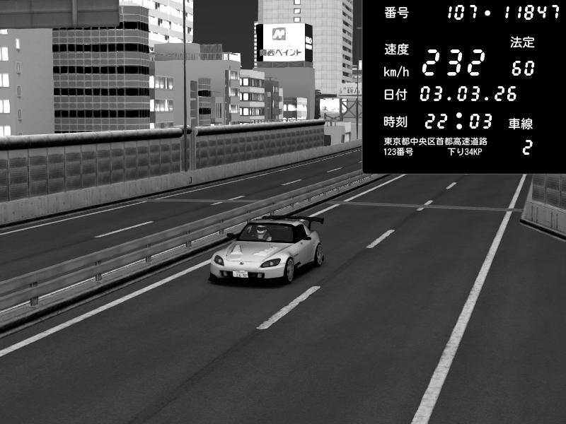 | 2026/03/03 22:01 | C1外回り 新富町 | 137 / 60 km/h | Honda S2000 (AP2 - Legendary) | CAPTURE |