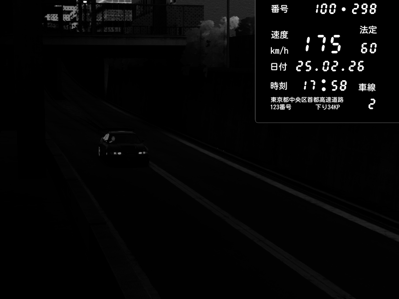 | 2026/02/25 17:58 | C1内回り 京橋 | 175 / 60 km/h | Nissan Skyline GTR R33 (S3 - Wangan) | CAPTURE |