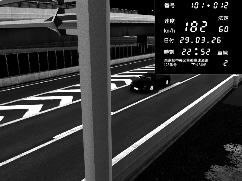 | 2026/03/29 22:52 | C1内回り 竹橋JCT | 182 / 60 km/h | Nissan Skyline GT-R R34 Nismo Omori Factory S1 | CAPTURE |