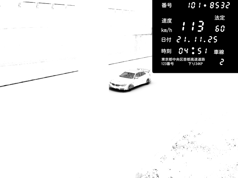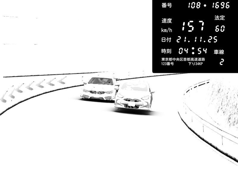 | 2025/11/21 04:54 | 4号下り 代々木 | 157 / 60 km/h | BMW M4 crash.Sp Varis Widebody | CAPTURE |