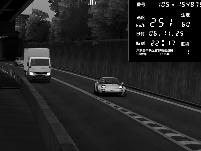 | 2025/11/06 22:17 | C1外回り 京橋 | 251 / 60 km/h | Mazda RX-7 FD3S FEED Afflux GT3 | CAPTURE |
