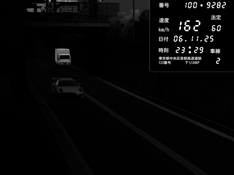 | 2025/11/06 23:29 | C1内回り 京橋 | 162 / 60 km/h | Porsche 911 GT3 RS | CAPTURE |