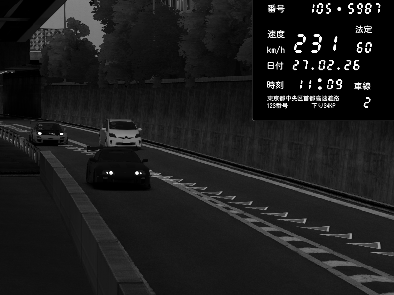 | 2026/02/27 11:09 | C1外回り 京橋 | 231 / 60 km/h | Toyota Supra MKIV Time Attack | CAPTURE |