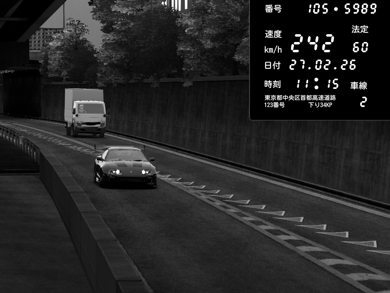 | 2026/02/27 11:15 | C1外回り 京橋 | 242 / 60 km/h | Toyota Supra MKIV Time Attack | CAPTURE |