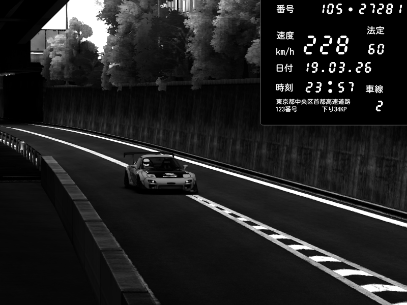 | 2026/03/19 23:58 | C1外回り 京橋 | 228 / 60 km/h | Mazda RX-7 FD3S FEED Afflux GT3 | CAPTURE |