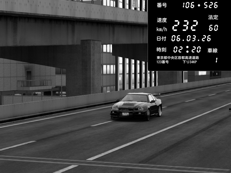 | 2026/03/06 02:20 | 9号下り 木場 | 232 / 60 km/h | Nissan Skyline GT-R R34 Nismo Omori Factory S1 | CAPTURE |