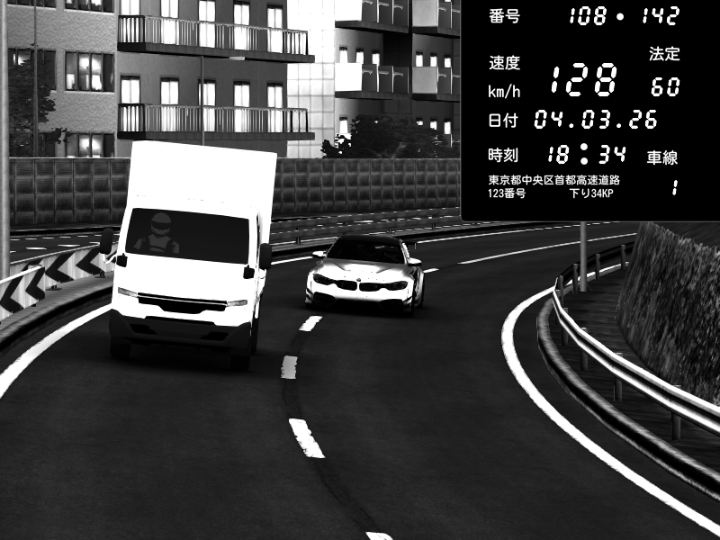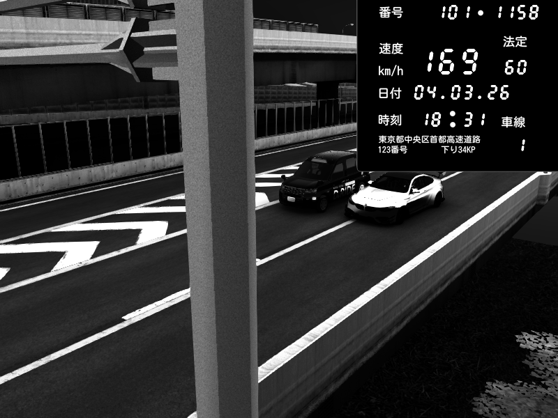 | 2026/03/04 18:34 | 4号下り 代々木 | 128 / 60 km/h | BMW M4 crash.Sp Varis Widebody | CAPTURE |