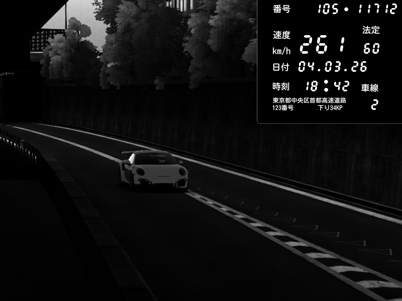 | 2026/03/04 18:42 | C1外回り 京橋 | 261 / 60 km/h | Porsche 911 GT3 RS | CAPTURE |