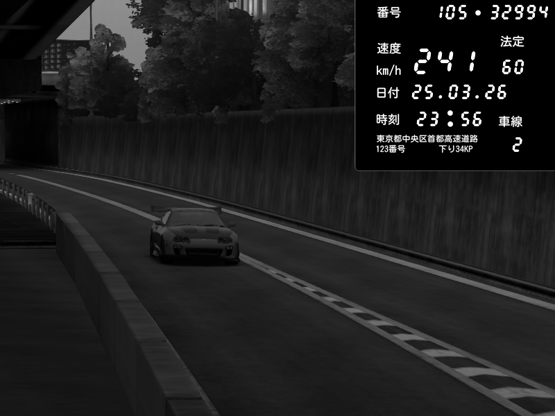 | 2026/03/25 23:56 | C1外回り 京橋 | 241 / 60 km/h | Toyota Supra MKIV Time Attack | CAPTURE |