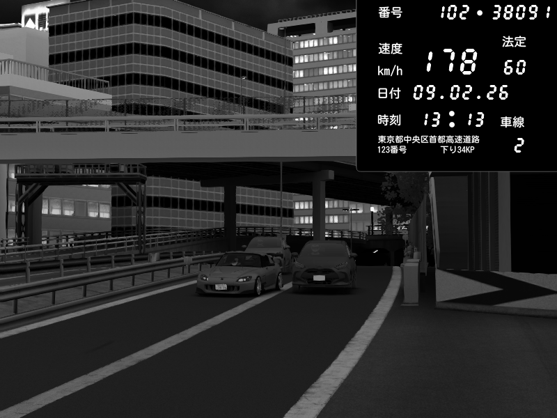 | 2026/02/09 13:13 | C1外回り 新富町 | 178 / 60 km/h | Honda S2000 (AP2 - Legendary) | CAPTURE |