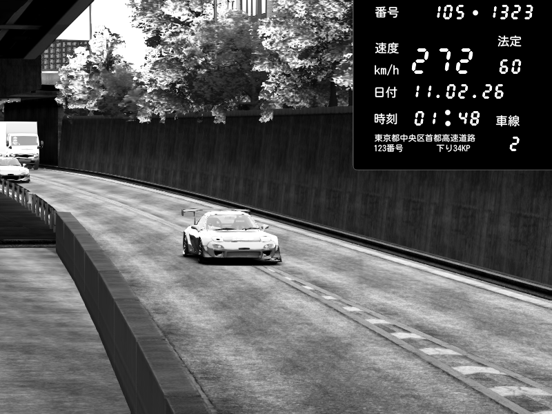 | 2026/02/11 01:48 | C1外回り 京橋 | 272 / 60 km/h | Mazda RX-7 FD3S FEED Afflux GT3 | CAPTURE |