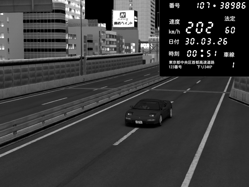 | 2026/03/30 00:56 | C1外回り 新富町 | 131 / 60 km/h | Honda NSX [NA1] PVLSX | CAPTURE |