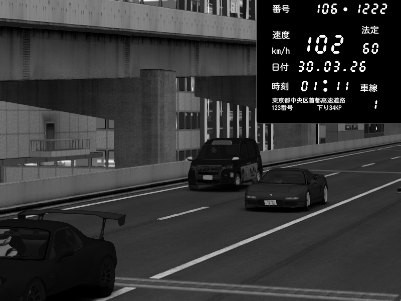 | 2026/03/30 01:08 | C1内回り 京橋 | 109 / 60 km/h | Honda NSX [NA1] PVLSX | CAPTURE |