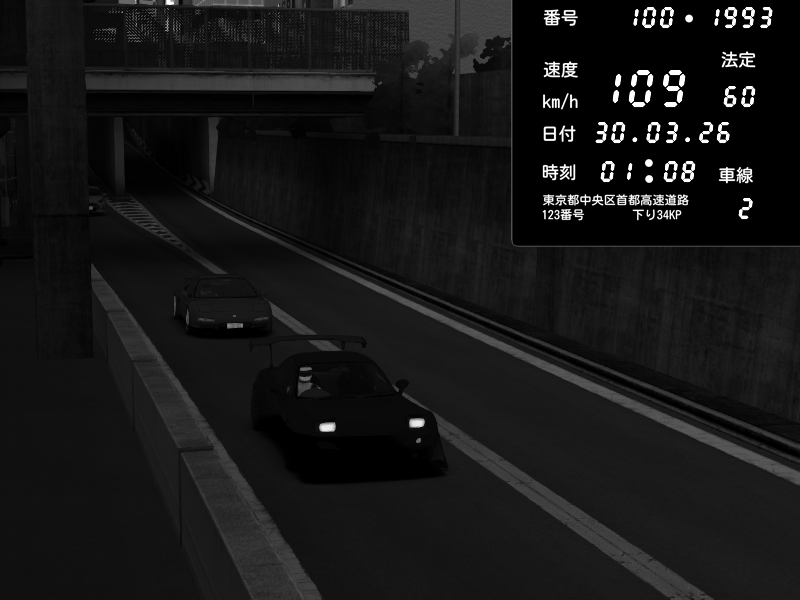 | 2026/01/25 00:30 | C1外回り 新富町 | 117 / 60 km/h | Nissan Skyline GTR R33 (S3 - Wangan) | CAPTURE |