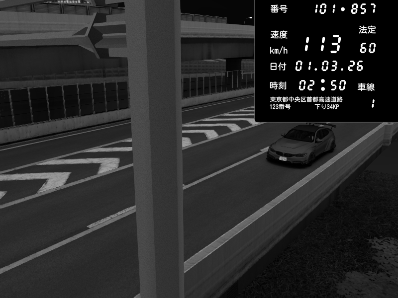 | 2026/03/01 02:50 | C1内回り 竹橋JCT | 113 / 60 km/h | BMW M4 crash.Sp Varis Widebody | CAPTURE |