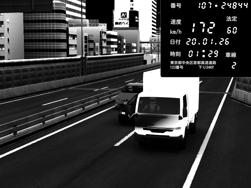 | 2026/01/20 01:37 | C1内回り 竹橋JCT | 170 / 60 km/h | Mitsubishi Lancer Evolution V Wangan Spec | CAPTURE |