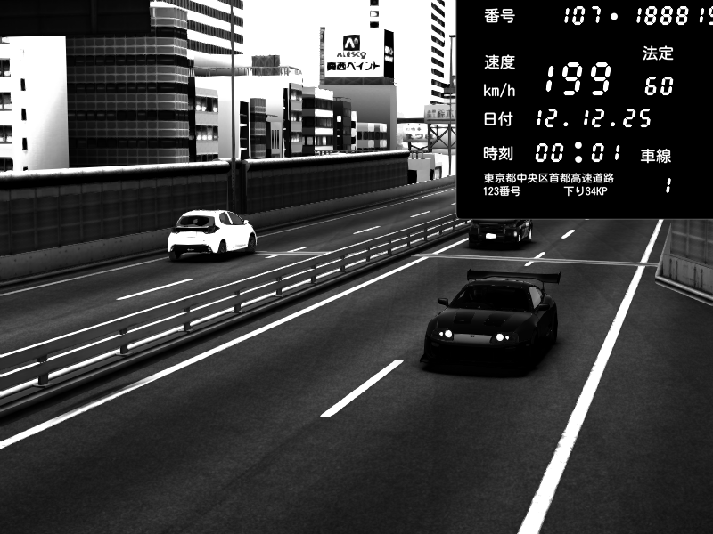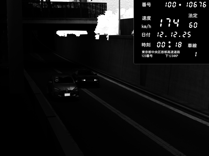 | 2025/12/12 00:18 | C1内回り 京橋 | 174 / 60 km/h | Toyota Supra MKIV Time Attack | CAPTURE |