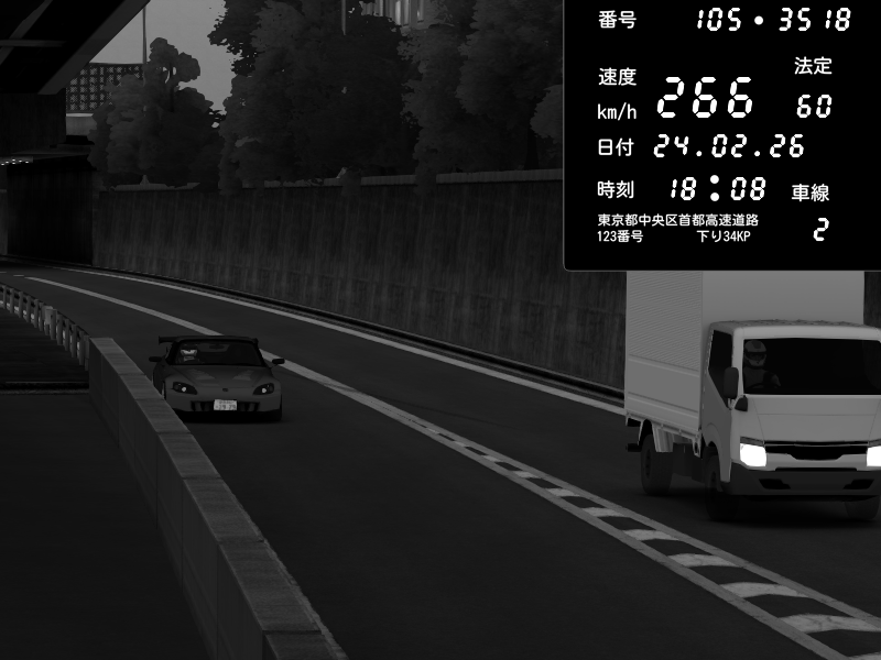 | 2026/02/24 18:08 | C1外回り 京橋 | 266 / 60 km/h | Honda S2000 (AP2 - Legendary) | CAPTURE |