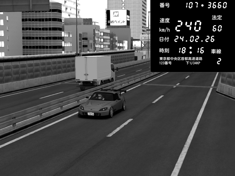 | 2026/02/24 18:16 | C1外回り 新富町 | 218 / 60 km/h | Honda S2000 (AP2 - Legendary) | CAPTURE |