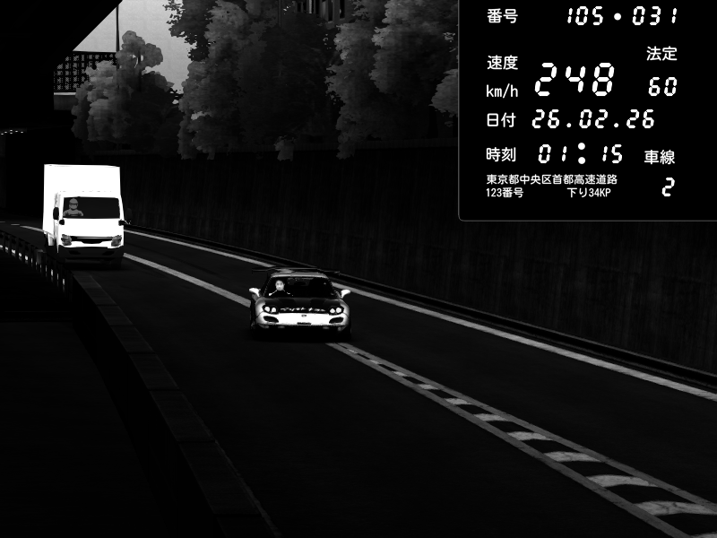 | 2026/02/26 01:15 | C1外回り 京橋 | 248 / 60 km/h | Mazda RX-7 FD3S RE Amemiya | CAPTURE |