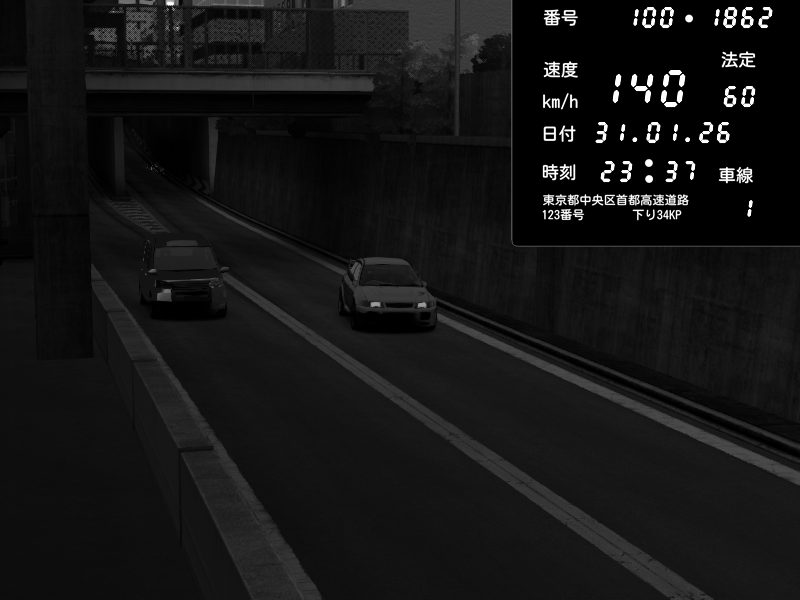 | 2026/01/31 23:26 | 4号下り 代々木 | 109 / 60 km/h | Nissan Skyline GTR R33 (S3 - Wangan) | CAPTURE |