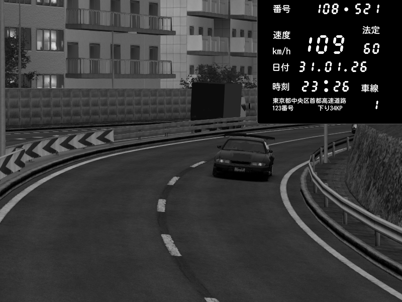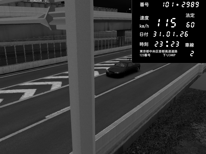 | 2026/01/31 23:23 | C1内回り 竹橋JCT | 115 / 60 km/h | Nissan Skyline GTR R33 (S3 - Wangan) | CAPTURE |