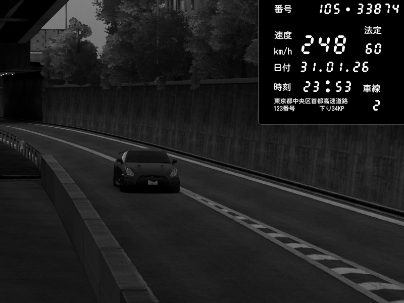 | 2026/01/31 23:53 | C1外回り 京橋 | 248 / 60 km/h | Nissan GT-R NISMO 2017 | CAPTURE |
