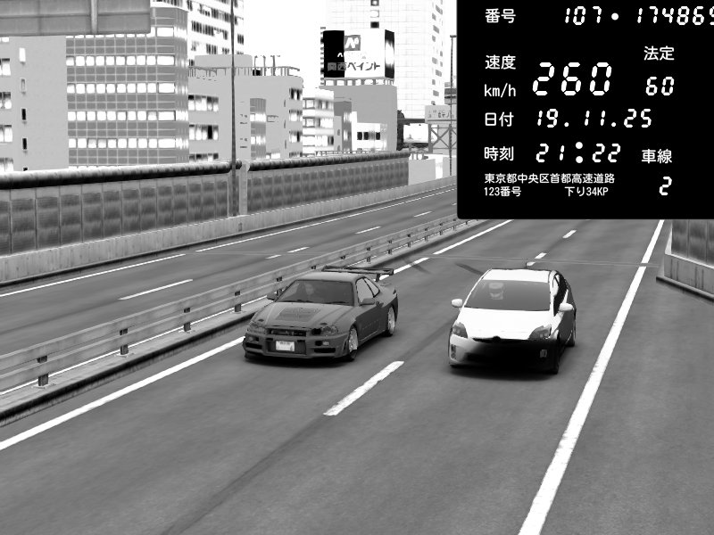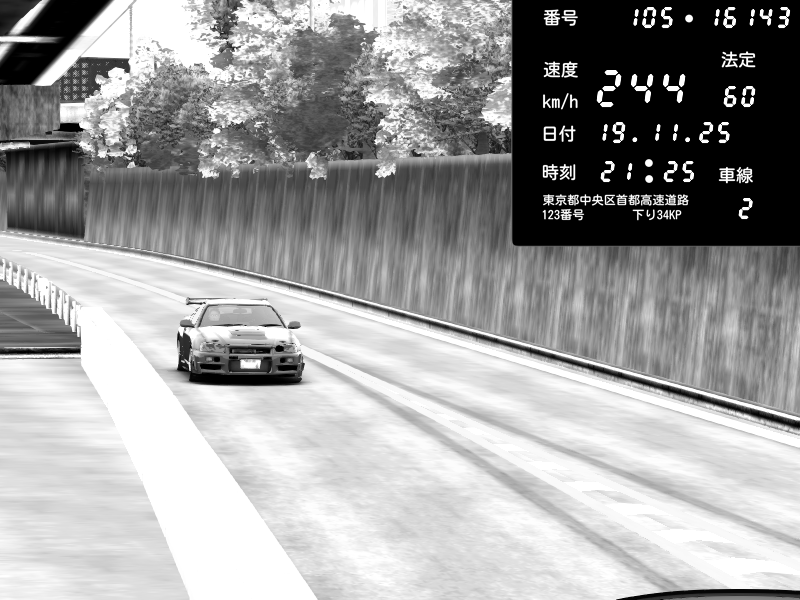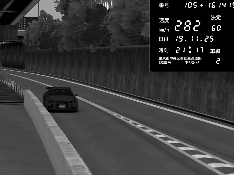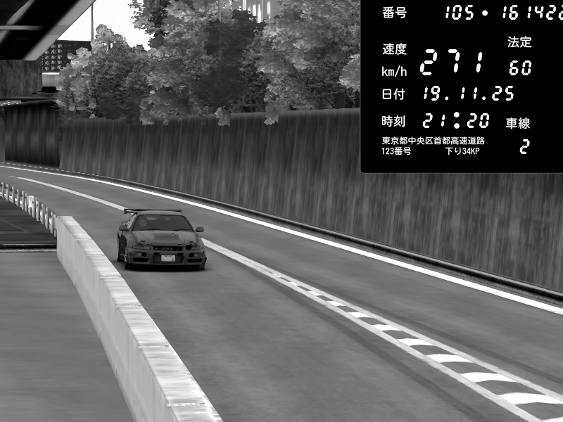 | 2025/11/19 21:20 | C1外回り 京橋 | 271 / 60 km/h | Nissan Skyline GT-R R34 Nismo Omori Factory S1 | CAPTURE |