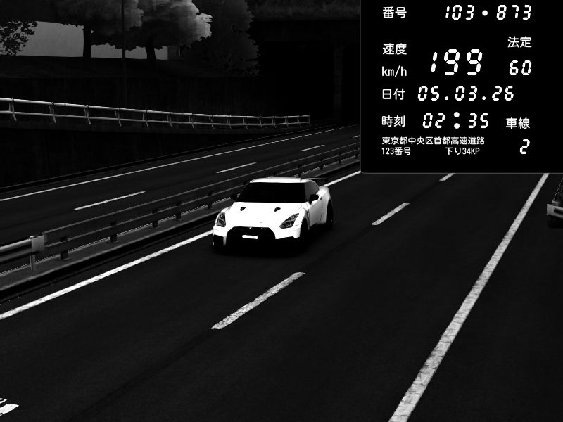 | 2026/03/05 02:09 | C1外回り 京橋 | 193 / 60 km/h | Nissan GT-R NISMO 2017 | CAPTURE |