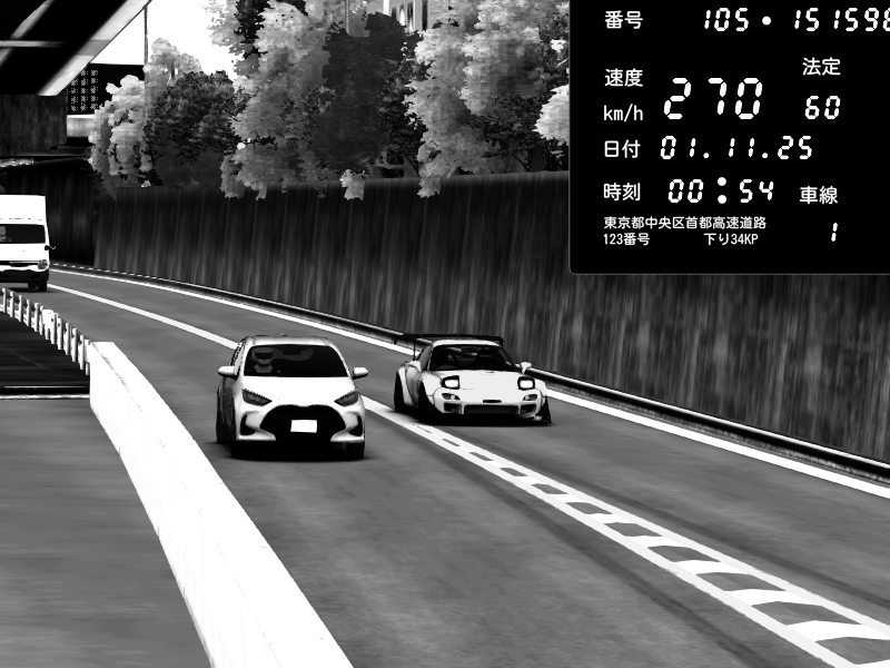 | 2025/11/01 00:54 | C1外回り 京橋 | 270 / 60 km/h | Mazda RX-7 FD3S FEED Afflux GT3 | CAPTURE |