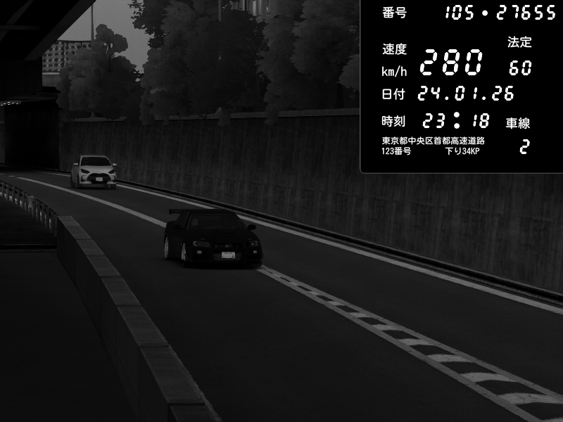 | 2026/01/24 23:18 | C1外回り 京橋 | 280 / 60 km/h | Nissan Skyline GT-R R34 Nismo Omori Factory S1 | CAPTURE |