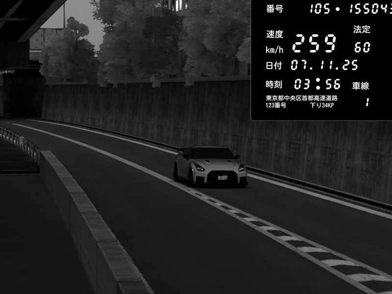 | 2025/11/07 03:56 | C1外回り 新富町 | 149 / 60 km/h | Nissan GT-R NISMO 2017 | CAPTURE |