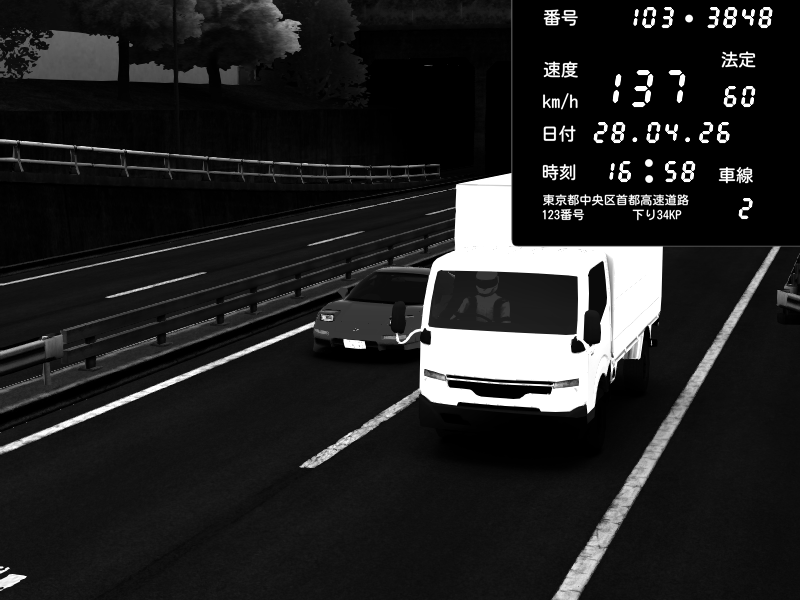 | 2026/04/28 17:41 | C1内回り 竹橋JCT | 146 / 60 km/h | Toyota Supra MKIV Time Attack | CAPTURE |