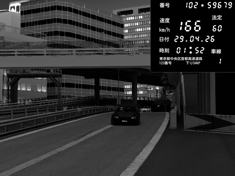 | 2026/04/29 01:52 | C1外回り 新富町 | 166 / 60 km/h | Honda S2000 Turbo GT1 Amuse (AP1) | CAPTURE |